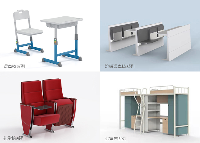 20年植根于教育市場(chǎng),專(zhuān)業(yè)研發(fā)學(xué)校辦公家具、學(xué)生課桌椅、禮堂椅、公寓床、影院椅等,涵蓋10大品類(lèi),5000款單品。